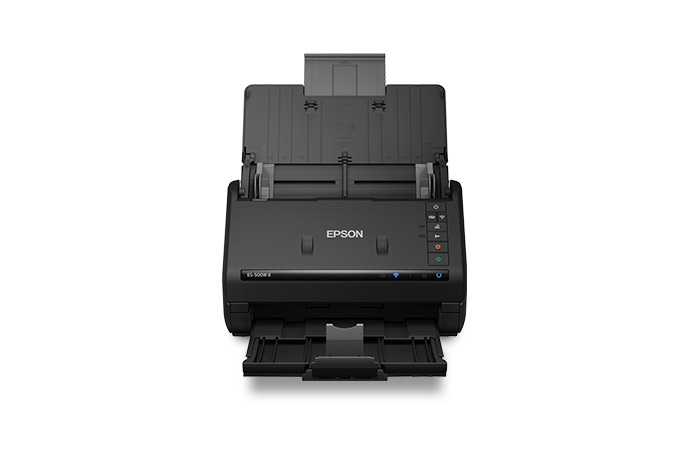 Get organized fast with the WorkForce ES-500W II wireless duplex document scanner. This reliable, easy-to-use performer speeds through scans up to 35 ppm/70 ipm1, capturing both sides of each sheet in one pass. Its 50-sheet Auto Document Feeder allows you to breeze through stacks of documents of varying sizes. Intuitive Epson ScanSmart Software2 means you can easily preview, email and upload your scans. The included TWAIN driver ensures compatibility with most document management software. Wirelessly scan to cloud storage accounts2 and create searchable PDFs. You can also scan directly from your mobile device using the Epson Smart Panel app3. Color and image adjustment features such as auto crop, staple protection, dirt detection and paper-skew correction help ensure remarkable image quality.